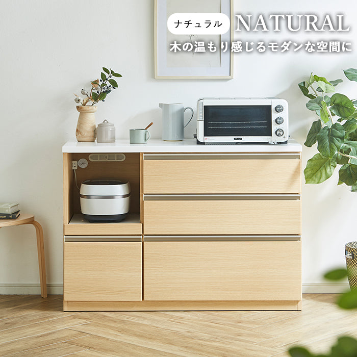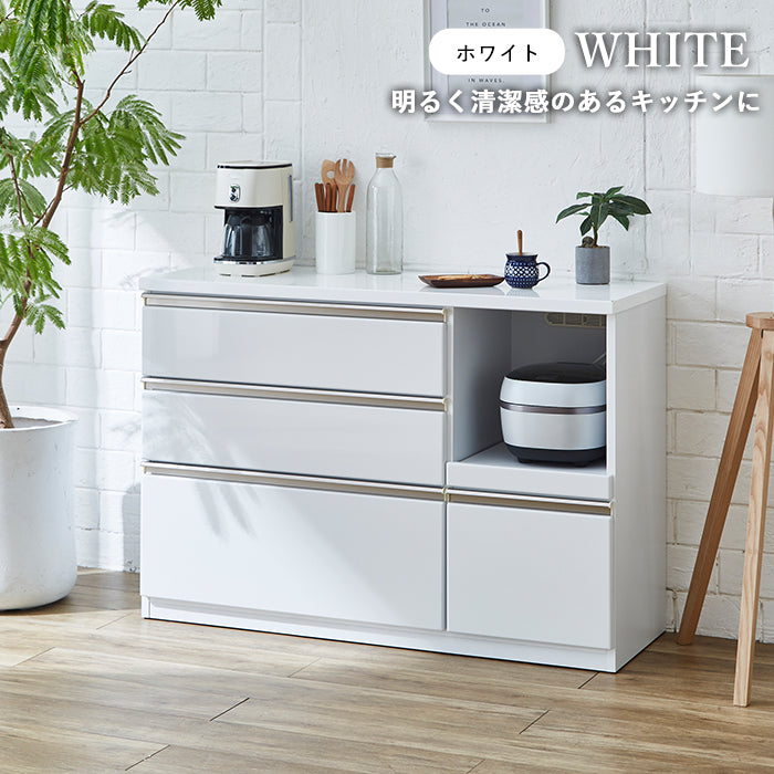 レンジラック / 収納棚 / 収納家具 / 食器収納 / 家電収納 / 電子レンジ台 / ラック / ワゴン / 引出 / スライド棚 / スライドレール / 1口コンセント / モイス / 耐熱 / 消臭 / 扉付 / 省スペース / 幅120cm / 幅140cm / 幅160cm / 背面化粧仕上げ / 北欧 / モダン / 炊飯器 / キッチンストッカー / キッチン家具 / キッチン用品