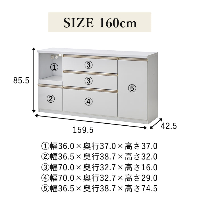 ・幅160cm:幅159.5×奥行42.5×高さ85.5cm